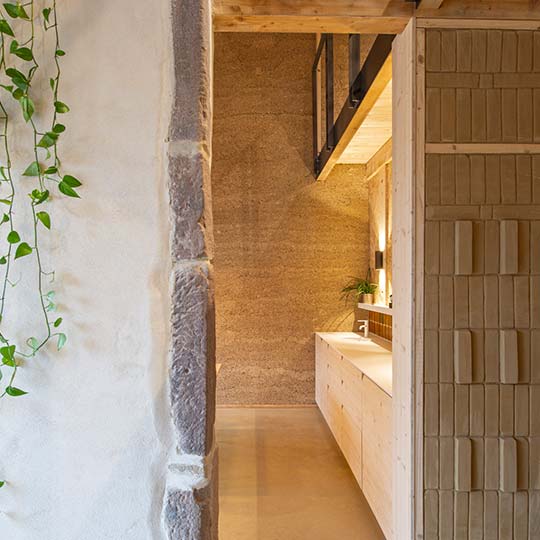 Les enduits en chanvre sont généralement composés de chènevotte et d’un liant à base de chaux, avec l’ajout éventuel d’autres composants pour améliorer certaines propriétés. Ces enduits peuvent être appliqués en forte épaisseur pour des reprises de mur. Ils contribuent à améliorer sensiblement le confort thermique et acoustique. Leur bonne perméabilité à la vapeur d’eau favorise la perspirance des murs en béton de chanvre, essentielle pour garantir une régulation optimale de l’humidité et un environnement intérieur sain.