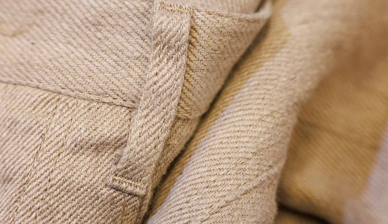 La technique d’affinage de la fibre de chanvre longue suit le même processus que celui du lin, en utilisant notamment les techniques de rouissage au champ, de teillage et de filature pour obtenir des fils 100 % chanvre. Une fois tissés, ces fils produisent un tissu naturel qui sera ensuite ennobli (teinté, imprimé) pour être utilisé dans le secteur de la confection ou de l’ameublement, créant ainsi un produit 100 % chanvre.