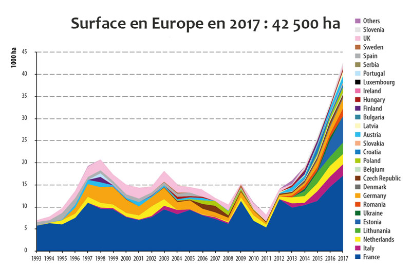 En 2011, les surfaces de chanvre européennes ont atteint leur plus bas niveau depuis 1994 avec seulement 8 000