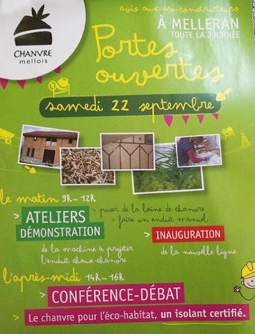 Une centaine de personnes (grand public et professionnels) ont profité des portes ouvertes de Chanvre Mellois, groupement de producteurs de chanvre fermier des Deux-Sèvres, pour s’informer sur les caractéristiques de ce matériau pour un usage dans le secteur du bâtiment. Y intervenaient Delphine Batho (députée), Damien Marchand (Cluster Eco Habitat Nouvelle-Aquitaine) et Arthur Hellouin de Ménibus (Chanvrier en Circuits Courts).
