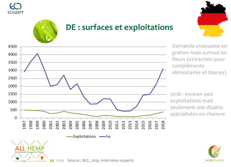 La filière chanvre allemande s’est reconstruite à partir de 1995, la culture étant interdite auparavant, pour atteindre 3 100